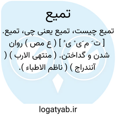 تمیع. [ ت َ م َی ْ ی ُ ] ( ع مص ) روان شدن و گداختن. ( منتهی الارب ) ( آنندراج ) ( ناظم الاطباء ). تسیل: الفضة تتمیع فی البوطة. ( اقرب الموارد ).