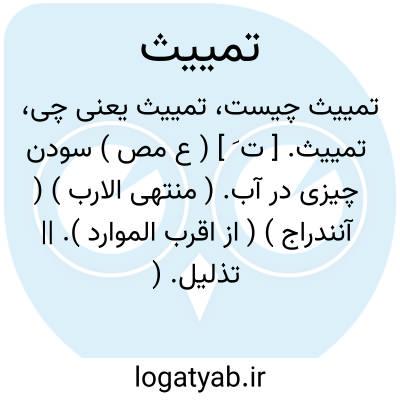 تمییث. [ ت َ ] ( ع مص ) سودن چیزی در آب. ( منتهی الارب ) ( آنندراج ) ( از اقرب الموارد ). || تذلیل. ( اقرب الموارد ).