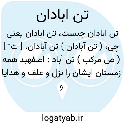 ( تن آبادان ) تن آبادان. [ ت َ ] ( ص مرکب ) تن آباد: اصفهبد همه زمستان ایشان را نزل و علف و هدایا و تحف فرستاد. چون اسبان فربه و ایشان تن آبادان شدند پیام دادند که یا به دین ما بگرود و اگر نه ولایت از تو بازگیریم. ( تاریخ طبرستان ).