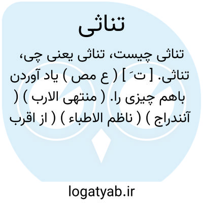لغت نامه دهخدا تناثی. [ ت َ ] ( ع مص ) یاد آوردن باهم چیزی را. ( منتهی الارب ) ( آنندراج ) ( ناظم الاطباء ) ( از اقرب الموارد ).