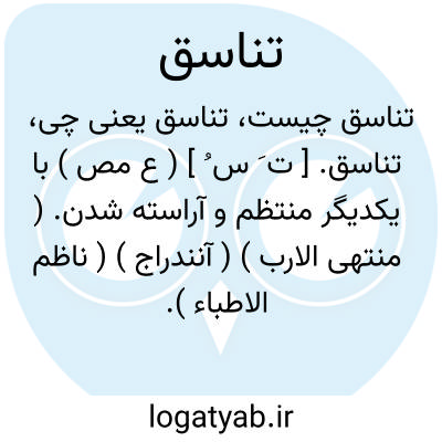 تناسق. [ ت َ س ُ ] ( ع مص ) با یکدیگر منتظم و آراسته شدن. ( منتهی الارب ) ( آنندراج ) ( ناظم الاطباء ). تنسق. انتساق.انتظام بعض چیز با بعضی دیگر. ( از اقرب الموارد ).