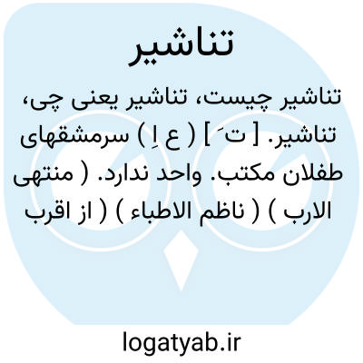 تناشیر. [ ت َ ] ( ع اِ ) سرمشقهای طفلان مکتب. واحد ندارد. ( منتهی الارب ) ( ناظم الاطباء ) ( از اقرب الموارد ). یقال: ما اشبه خطه بتناشیر الصبیان و هی خطوطهم فی المکتب. ( اقرب الموارد ).