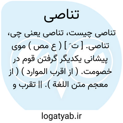 تناصی. [ ت َ ] ( ع مص ) موی پیشانی یکدیگر گرفتن قوم در خصومت. ( از اقرب الموارد ) ( از معجم متن اللغة ). || تقرب و تقابل طلح و سیال ( دو نوع گیاه ) چنانکه این بر آن و آن بر این درآید با وزش باد. ( از اقرب الموارد ).