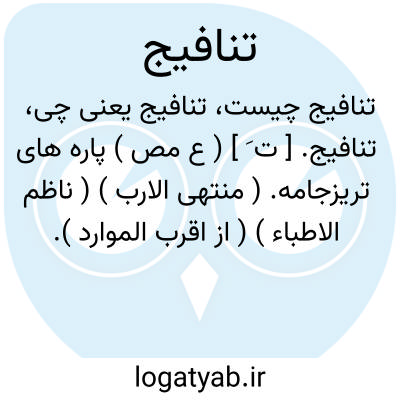 لغت نامه دهخدا تنافیج. [ ت َ ] ( ع مص ) پاره های تریزجامه. ( منتهی الارب ) ( ناظم الاطباء ) ( از اقرب الموارد ).