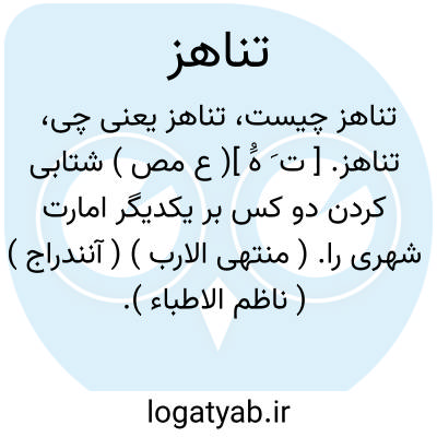 تناهز. [ ت َ هَُ ]( ع مص ) شتابی کردن دو کس بر یکدیگر امارت شهری را. ( منتهی الارب ) ( آنندراج ) ( ناظم الاطباء ). یقال: هما یتناهزان امارة بلد کذا؛ ای یتبادران الی طلبها و تناولها. ( اقرب الموارد ). || همدیگر فرصت یافتن. ( منتهی الارب ) ( آنندراج ) ( ناظم الاطباء ). یقال: تناهزوا الفرص؛ ای ابتدروا لاغتنامها. ( اقرب الموارد ).