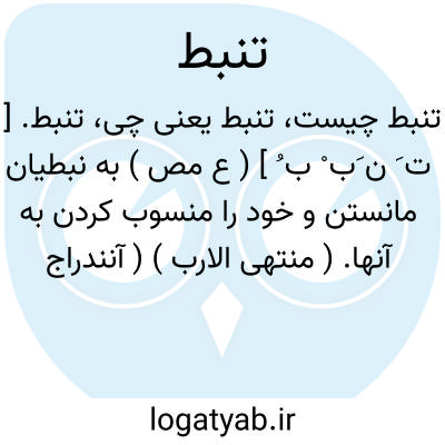 لغت نامه دهخدا تنبط. [ ت َ ن َب ْ ب ُ ] ( ع مص ) به نبطیان مانستن و خود را منسوب کردن به آنها. ( منتهی الارب ) ( آنندراج ) ( ناظم الاطباء ) ( از اقرب الموارد ). || برآوردن سخن را. || آب بیرون آوردن از چاه. ( منتهی الارب ) ( آنندراج ) ( از ناظم الاطباء ).