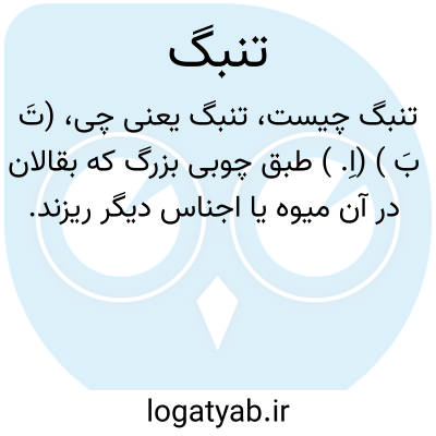 (تَ بَ ) (اِ. ) طبق چوبی بزرگ که بقالان در آن میوه یا اجناس دیگر ریزند.