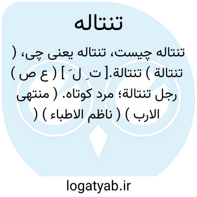 لغت نامه دهخدا ( تنتالة ) تنتالة.[ ت ِ ل َ ] ( ع ص ) رجل تنتالة؛ مرد کوتاه. ( منتهی الارب ) ( ناظم الاطباء ) ( از اقرب الموارد ) ( از آنندراج ).