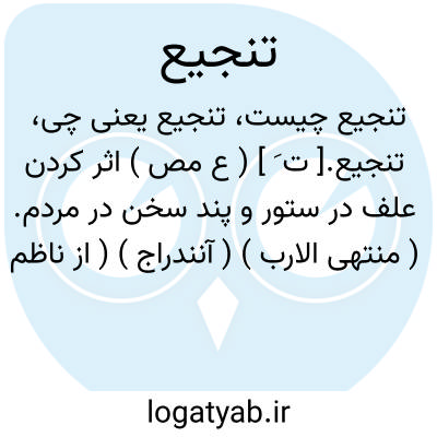تنجیع.[ ت َ ] ( ع مص ) اثر کردن علف در ستور و پند سخن در مردم. ( منتهی الارب ) ( آنندراج ) ( از ناظم الاطباء ). اثر کردن دواء و علف و وعظ و خطاب. ( از اقرب الموارد ).
