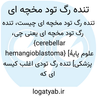 {cerebellar hemangioblastoma} [علوم پایۀ پزشکی] تنده رگ تودی اغلب کیسه ای که در مخچه ایجاد می شود
