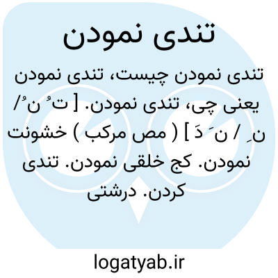 تندی نمودن. [ ت ُ ن ُ/ ن ِ / ن َ دَ ] ( مص مرکب ) خشونت نمودن. کج خلقی نمودن. تندی کردن. درشتی نمودن. تیزی نمودن: