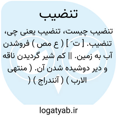 تنضیب. [ ت َ ] ( ع مص ) فروشدن آب به زمین. || کم شیر گردیدن ناقه و دیر دوشیده شدن آن. ( منتهی الارب ) ( آنندراج ) ( ناظم الاطباء ) ( از اقرب الموارد ).