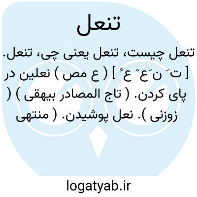 تنعل. [ ت َ ن َع ْ ع ُ ] ( ع مص ) نعلین در پای کردن. ( تاج المصادر بیهقی ) ( زوزنی ). نعل پوشیدن. ( منتهی الارب ) ( آنندراج ) ( ناظم الاطباء ) ( از اقرب الموارد ).