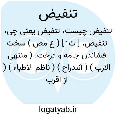 لغت نامه دهخدا تنفیض. [ ت َ ] ( ع مص ) سخت فشاندن جامه و درخت. ( منتهی الارب ) ( آنندراج ) ( ناظم الاطباء ) ( از اقرب الموارد ).