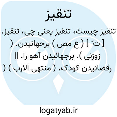 تنقیز. [ ت َ ] ( ع مص ) برجهانیدن. ( زوزنی ). برجهانیدن آهو را. || رقصانیدن کودک. ( منتهی الارب ) ( ناظم الاطباء ) ( آنندراج ). رقصانیدن مادر کودک را. ( از اقرب الموارد ).