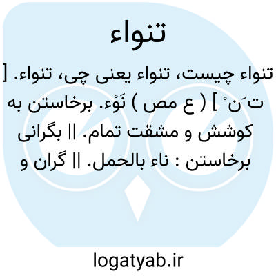 تنواء. [ ت َن ْ ] ( ع مص ) نَوْء. برخاستن به کوشش و مشقت تمام. || بگرانی برخاستن: ناء بالحمل. || گران و مائل گردانیدن کسی را: ناء به الحمل، منه قوله تعالی: ما ان مفاتحه لتنوء بالعصبة؛ ای لتُنی العصبة بثقلها. || افتادن از گرانباری: ناء فلان ( از اضداد است ). ( از منتهی الارب ) ( از اقرب الموارد ).