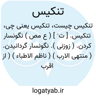 تنکیس. [ ت َ ] ( ع مص ) نگونسار کردن. ( زوزنی ). نگونسار گردانیدن. ( منتهی الارب ) ( ناظم الاطباء ) ( از اقرب الموارد ). سرنگون گردیدن. ( آنندراج ):... و نفرین مظلومان سبب تشویق حال و تهییج اسباب خذلان و تنکیس رایت دولت او مؤثر آمد. ( ترجمه تاریخ یمینی چ 1 تهران ص 270 ). لشکر به تخریب دیار و تعذیب کفار و تنکیس اصنام و... دست برگشاد. ( ترجمه تاریخ یمینی ایضاً ص 321 ). || نپیوستن اسب به اسبان دیگر. ( از اقرب الموارد ).