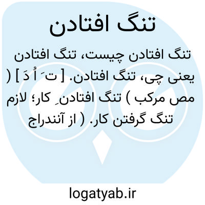 تنگ افتادن. [ ت َ اُ دَ ] ( مص مرکب ) تنگ افتادن ِ کار؛ لازم تنگ گرفتن کار. ( از آنندراج ). سخت و پیچیده و مشکل گردیدن امری:
