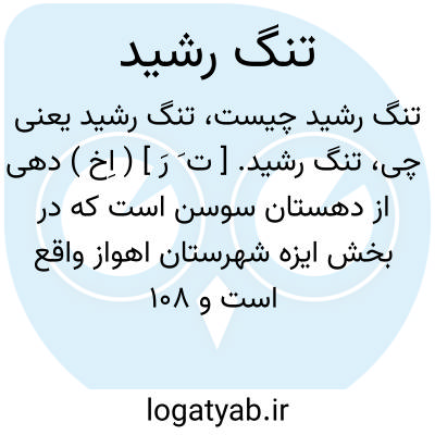 تنگ رشید. [ ت َ رَ ] ( اِخ ) دهی از دهستان سوسن است که در بخش ایزه شهرستان اهواز واقع است و 108 تن سکنه دارد. ( از فرهنگ جغرافیایی ایران ج 6 ).