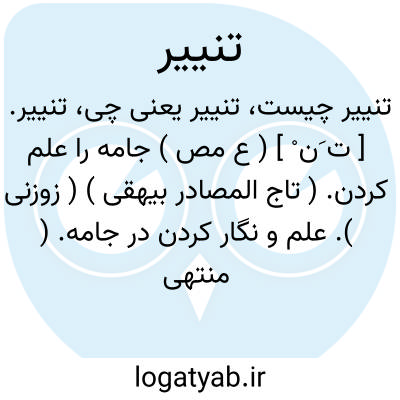 تنییر. [ ت َن ْ ] ( ع مص ) جامه را علم کردن. ( تاج المصادر بیهقی ) ( زوزنی ). علم و نگار کردن در جامه. ( منتهی الارب ) ( آنندراج ) ( ناظم الاطباء ) ( از اقرب الموارد ).