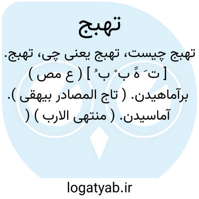تهبج. [ ت َ هََ ب ْ ب ُ ] ( ع مص ) برآماهیدن. ( تاج المصادر بیهقی ). آماسیدن. ( منتهی الارب ) ( ناظم الاطباء ). تورم. ( اقرب الموارد ). مشابه به آماس شدن چه بهج بفتحتین آماسیدن است و با تفعل برای تشبیه آید. ( غیاث اللغات ) ( آنندراج ). آماس. ( ناظم الاطباء ). نزد اطباء عبارت از ورمی است که هنگام بسودن دست به موضع ورم احساس نرمی شود. و اگر در موقع بسودن دست موضع ورم نرم نباشد و برآمدگی مقاوم حس لمس داشته باشد آن را نفخة نامند. ( از کشاف اصطلاحات الفنون ).