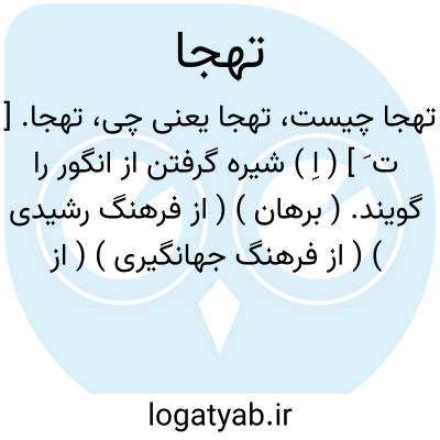 تهجا. [ ت َ ] ( اِ ) شیره گرفتن از انگور را گویند. ( برهان ) ( از فرهنگ رشیدی ) ( از فرهنگ جهانگیری ) ( از آنندراج ). شیره ای که از انگور گیرند. ( ناظم الاطباء ).