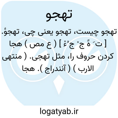 لغت نامه دهخدا تهجؤ. [ ت َ هََ ج ْ ج ُءْ ] ( ع مص ) هجا کردن حروف را، مثل تهجی. ( منتهی الارب ) ( آنندراج ). هجا کردن حروف و هجی نمودن. ( ناظم الاطباء ).