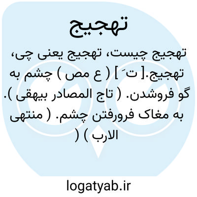تهجیج.[ ت َ ] ( ع مص ) چشم به گو فروشدن. ( تاج المصادر بیهقی ). به مغاک فرورفتن چشم. ( منتهی الارب ) ( آنندراج ) ( ناظم الاطباء ) ( از اقرب الموارد ). || گرفتن آتش چنانکه صدای آن شنیده شود. ( از اقرب الموارد ).
