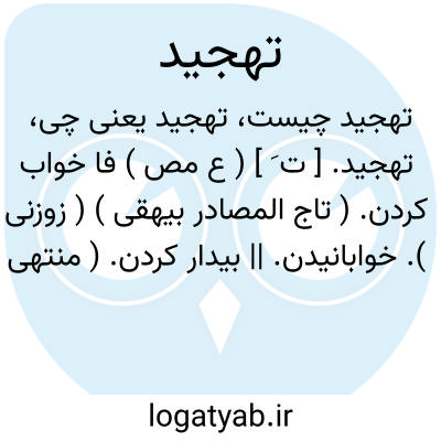 تهجید. [ ت َ ] ( ع مص ) فا خواب کردن. ( تاج المصادر بیهقی ) ( زوزنی ). خوابانیدن. || بیدار کردن. ( منتهی الارب ) ( آنندراج ) ( ناظم الاطباء ) ( از اقرب الموارد ). از اضداد است. ( ناظم الاطباء ). || به شب نماز گزاردن. ( از اقرب الموارد ).