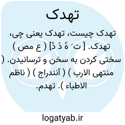 تهدک. [ ت َ هََ دْ دُ] ( ع مص ) سختی کردن به سخن و ترسانیدن. ( منتهی الارب ) ( آنندراج ) ( ناظم الاطباء ). تهدم. ( اقرب الموارد ).