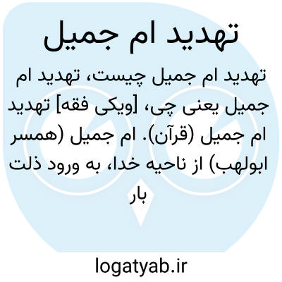 [ویکی فقه] تهدید ام جمیل (قرآن). ام جمیل (همسر ابولهب) از ناحیه خدا، به ورود ذلت بار در آتش دوزخ تهدید شد.