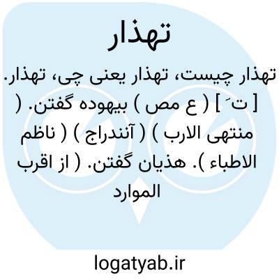 تهذار. [ ت َ ] ( ع مص ) بیهوده گفتن. ( منتهی الارب ) ( آنندراج ) ( ناظم الاطباء ). هذیان گفتن. ( از اقرب الموارد ). || سخت گرم گردیدن روز. ( منتهی الارب ) ( آنندراج ) ( ناظم الاطباء ) ( از اقرب الموارد ).