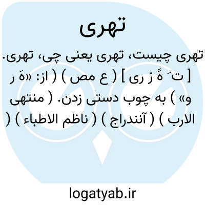 تهری. [ ت َ هََ رْ ری ] ( ع مص ) ( از: «هَ ر و» ) به چوب دستی زدن. ( منتهی الارب ) ( آنندراج ) ( ناظم الاطباء ) ( از اقرب الموارد ). به عصا بزدن. ( تاج المصادر بیهقی ).