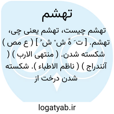 تهشم. [ ت َ هََ ش ْ ش ُ ] ( ع مص ) شکسته شدن. ( منتهی الارب ) ( آنندراج ) ( ناظم الاطباء ). شکسته شدن درخت از خشکی. ( از اقرب الموارد ). || شکستن. ( منتهی الارب ) ( آنندراج ) ( ناظم الاطباء ) ( ازاقرب الموارد ). || مهربان گشتن. || خواستن. ( منتهی الارب ) ( آنندراج ) ( ناظم الاطباء ). || استعطاف و ترضی. ( اقرب الموارد ). || مهربان شدن. ( منتهی الارب ) ( آنندراج ) ( ناظم الاطباء ). مهربانی کردن. ( تاج المصادر بیهقی ). تعطف. ( اقرب الموارد ). || خوار و سست شدن شتر. || شکستن و خوار کردن. ( منتهی الارب ) ( آنندراج ) ( ناظم الاطباء ) ( از اقرب الموارد ). || اکرام و بزرگداشت کردن کسی را. ( از اقرب الموارد ).