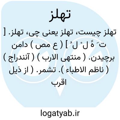 تهلز. [ ت َ هََ ل ْ ل ُ ] ( ع مص ) دامن برچیدن. ( منتهی الارب ) ( آنندراج ) ( ناظم الاطباء ). تشمر. ( از ذیل اقرب الموارد ). || خرامیدن. || آماده شدن. ( منتهی الارب ) ( آنندراج ) ( ناظم الاطباء ).