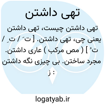 تهی داشتن. [ ت َ / ت ِ / ت ُ ] ( مص مرکب ) عاری داشتن. مجرد ساختن. بی چیزی نگه داشتن: