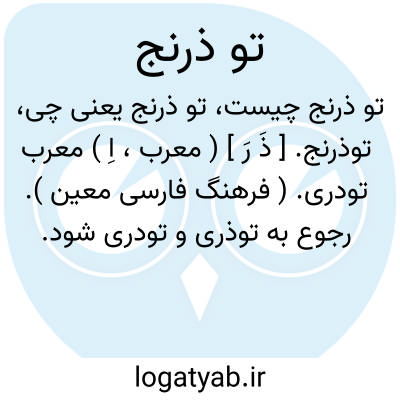 لغت نامه دهخدا توذرنج. [ ذَ رَ ] ( معرب، اِ ) معرب تودری. ( فرهنگ فارسی معین ). رجوع به توذری و تودری شود.