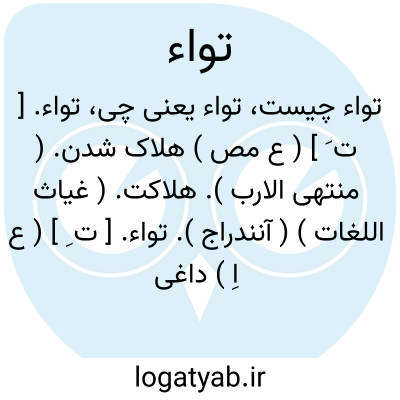 تواء. [ ت َ ] ( ع مص ) هلاک شدن. ( منتهی الارب ). هلاکت. ( غیاث اللغات ) ( آنندراج ).