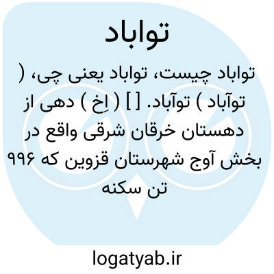 ( توآباد ) توآباد. [ ] ( اِخ ) دهی از دهستان خرقان شرقی واقع در بخش آوج شهرستان قزوین که 996 تن سکنه دارد. ( از فرهنگ جغرافیایی ایران ج 1 ).