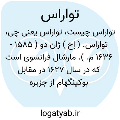 تواراس. ( اِخ ) ژان دو ( 1585 - 1636 م. ). مارشال فرانسوی است که در سال 1627 در مقابل بوکینگهام از جزیره ره دفاع کرد. ( از لاروس ).