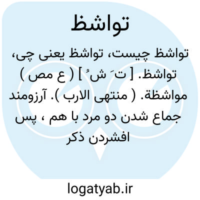 لغت نامه دهخدا تواشظ. [ ت َ ش ُ ] ( ع مص ) مواشظة. ( منتهی الارب ). آرزومند جماع شدن دو مرد با هم، پس افشردن ذکر خودشان بر شکم یکدیگر. ( ناظم الاطباء ).
