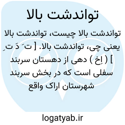 تواندشت بالا. [ ت َ دَ ت ِ ] ( اِخ ) دهی از دهستان سربند سفلی است که در بخش سربند شهرستان اراک واقع است و 1144 تن سکنه دارد. ( از فرهنگ جغرافیایی ایران ج 2 ).