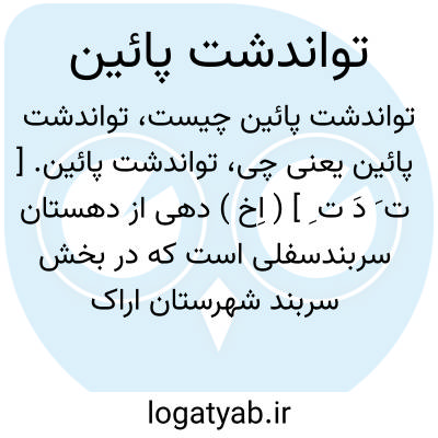 تواندشت پائین. [ ت َ دَ ت ِ ] ( اِخ ) دهی از دهستان سربندسفلی است که در بخش سربند شهرستان اراک واقع است و 141 تن سکنه دارد. ( از فرهنگ جغرافیایی ایران ج 2 ).