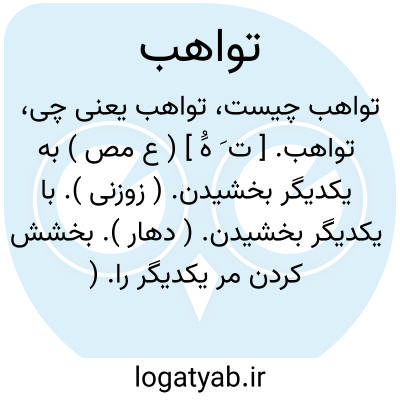 تواهب. [ ت َ هَُ ] ( ع مص ) به یکدیگر بخشیدن. ( زوزنی ). با یکدیگر بخشیدن. ( دهار ). بخشش کردن مر یکدیگر را. ( ناظم الاطباء ) ( از اقرب الموارد ).