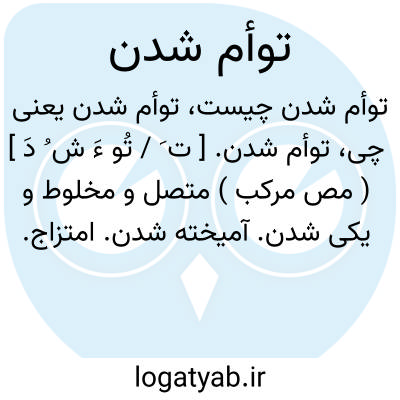 لغت نامه دهخدا توأم شدن. [ ت َ / تُو ءَ ش ُ دَ ] ( مص مرکب ) متصل و مخلوط و یکی شدن. آمیخته شدن. امتزاج.