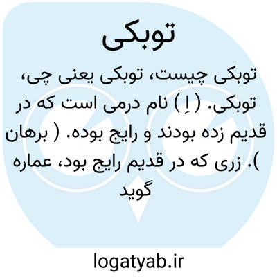 توبکی. ( اِ ) نام درمی است که در قدیم زده بودند و رایج بوده. ( برهان ). زری که در قدیم رایج بود، عماره گوید... و این نیز بوتکی باید به تقدیم با بر تا. ( فرهنگ رشیدی ). یک قسم درمی که در قدیم رایج و معمول بوده. ( ناظم الاطباء ). رجوع به توبک و توبگ و توتک و توتکی و تونک و توتگی شود.