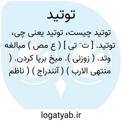 توتید. [ ت َ تی ] ( ع مص ) مبالغه وتد. ( زوزنی ). میخ برپا کردن. ( منتهی الارب ) ( آنندراج ) ( ناظم الاطباء ) ( از اقرب الموارد ). || تثبیت کردن، یقال: وتد اﷲ الارض بالجبال و اوتدها و وتدها. و یقال: وتد رِجْلَه ُ فی الارض؛ ای ثبتها... ( از اقرب الموارد ). || برخیزانیدن ذکر را. ( منتهی الارب ) ( آنندراج ) ( ناظم الاطباء ). || بر جای ماندن و اقامت کردن در خانه. || برآمدن و استوار و قوی شدن گیاه در کشتزار. ( از اقرب الموارد ).