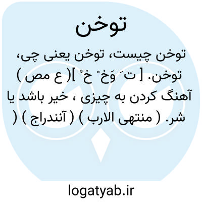 توخن. [ ت َ وَخ ْ خ ُ ]( ع مص ) آهنگ کردن به چیزی، خیر باشد یا شر. ( منتهی الارب ) ( آنندراج ) ( ناظم الاطباء ) ( از اقرب الموارد ).