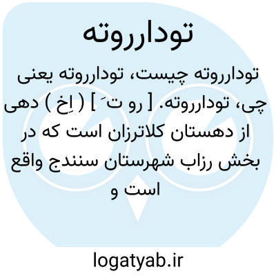 تودارروته. [ رو ت َ ] ( اِخ ) دهی از دهستان کلاترزان است که در بخش رزاب شهرستان سنندج واقع است و 430 تن سکنه دارد. ( از فرهنگ جغرافیایی ایران ج 5 ).