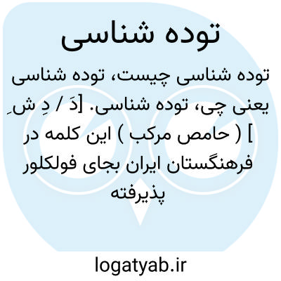 توده شناسی. [دَ / دِ ش ِ ] ( حامص مرکب ) این کلمه در فرهنگستان ایران بجای فولکلور پذیرفته شده و آن علم به آداب و عادات و رسوم عامه مردم و ترانه های محلی و مجموع افسانه ها و تصنیفها و... عامیانه است. رجوع به واژه های نو فرهنگستان ایران شود.